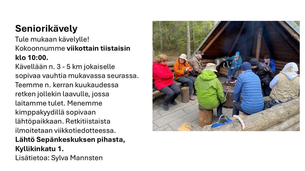 Senioriyhdistyksemme välittää jäsenistään. Jokainen jäsen saa kaksi kertaa vuodessa toimintakalenterin joko sähköisenä tai kirjeitse. Siitä on helppo tarkastaa viikoittaiset tapahtumat. Tarjoamme kohtaamismahdollisuuksia, jotka edistävät terveyttä ja vähentävät yksinäisyyden tunnetta. Keskinäinen ystävätoimintamme auttaa ja ohjaa myös palvelujen äärelle.